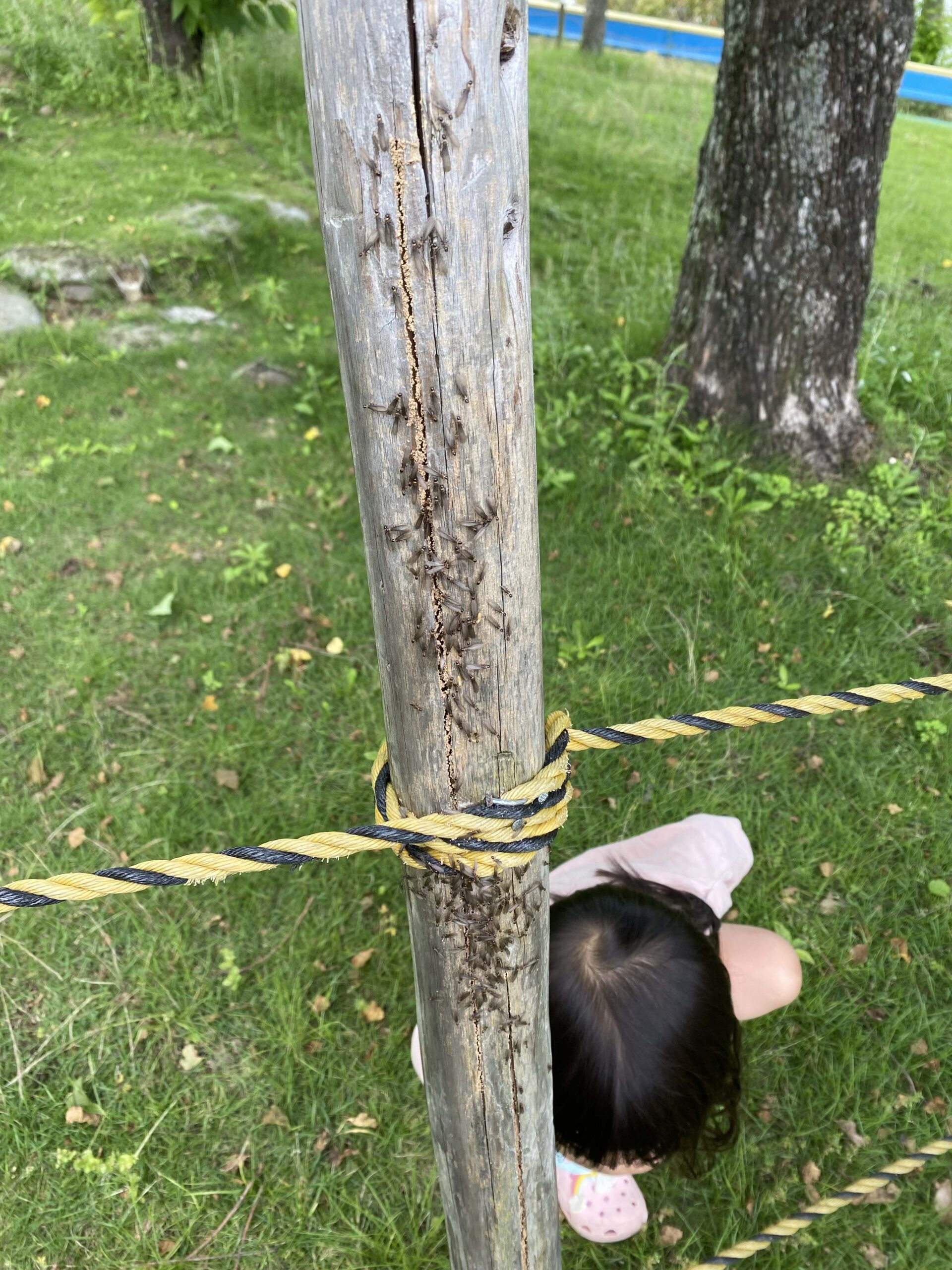ふと杭木の割れ目を見ると、大量の黒い虫がみるみるうちに湧き出てきました。